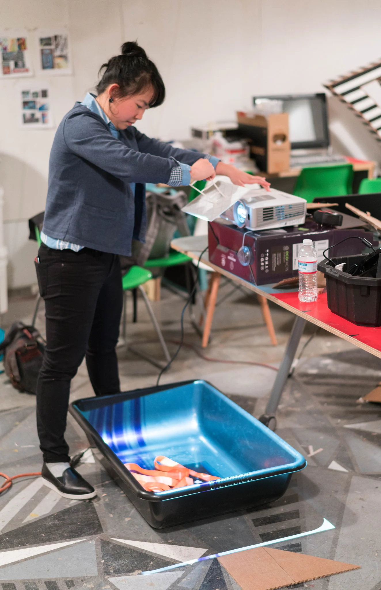 After we put the prototype together at our last meeting we investigated the design of the overhead structure which will house both the projector and the Kinect sensor. While we've done so in the past, we've made the decision not to mount the projector vertically this time out of a concern for that a vertical install might significantly shorten the projector lifespan. Mounting the projector horizontally means we'll need to use a mirror to reflect the image onto the table below. In early testing we've found that our short throw projector needs a large hole in the over structure. We spent a fair amount of time massaging the location of the projector, mirror and kinect sensor to verify all three can fit within the tight confines of the overhead compartment.