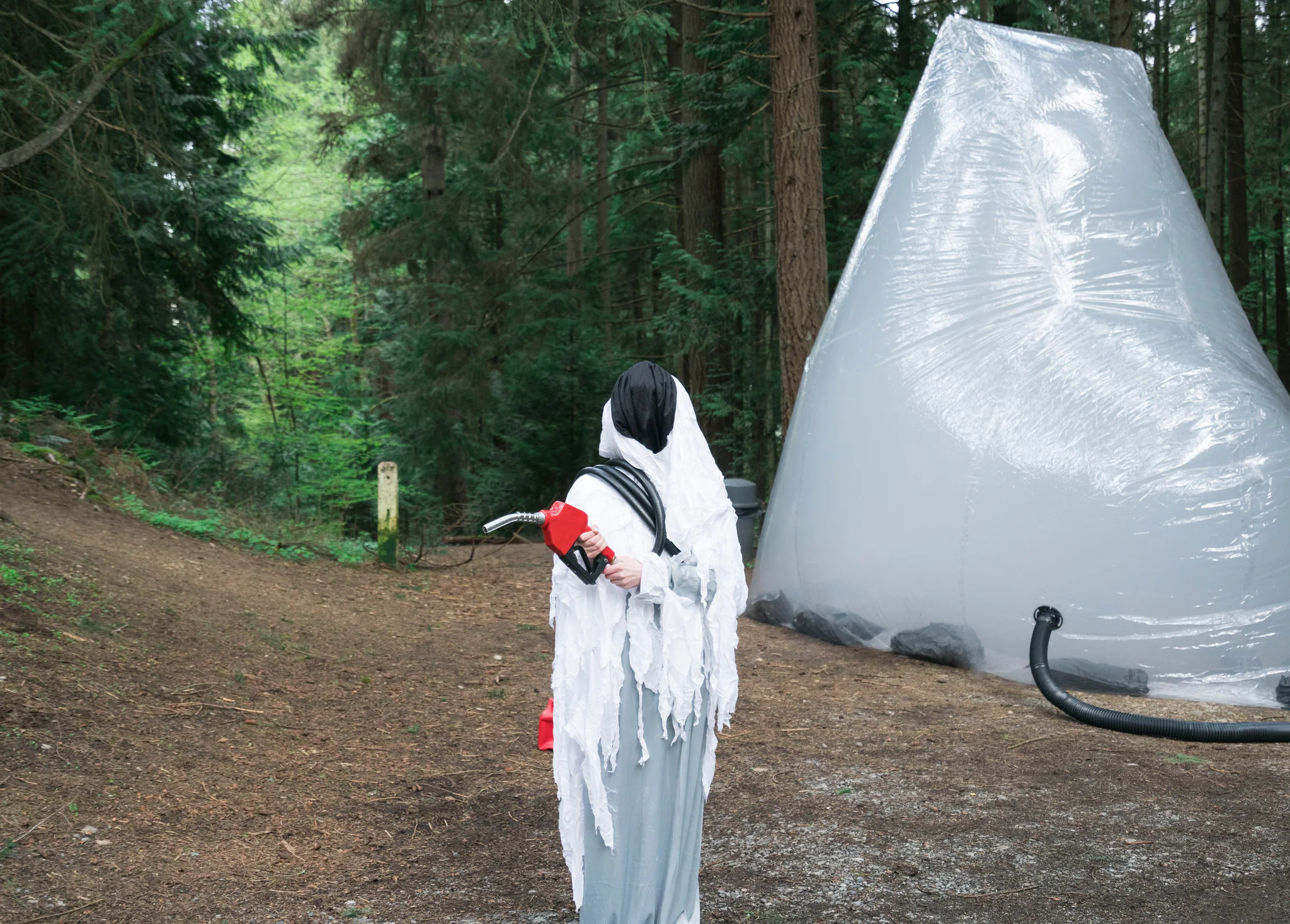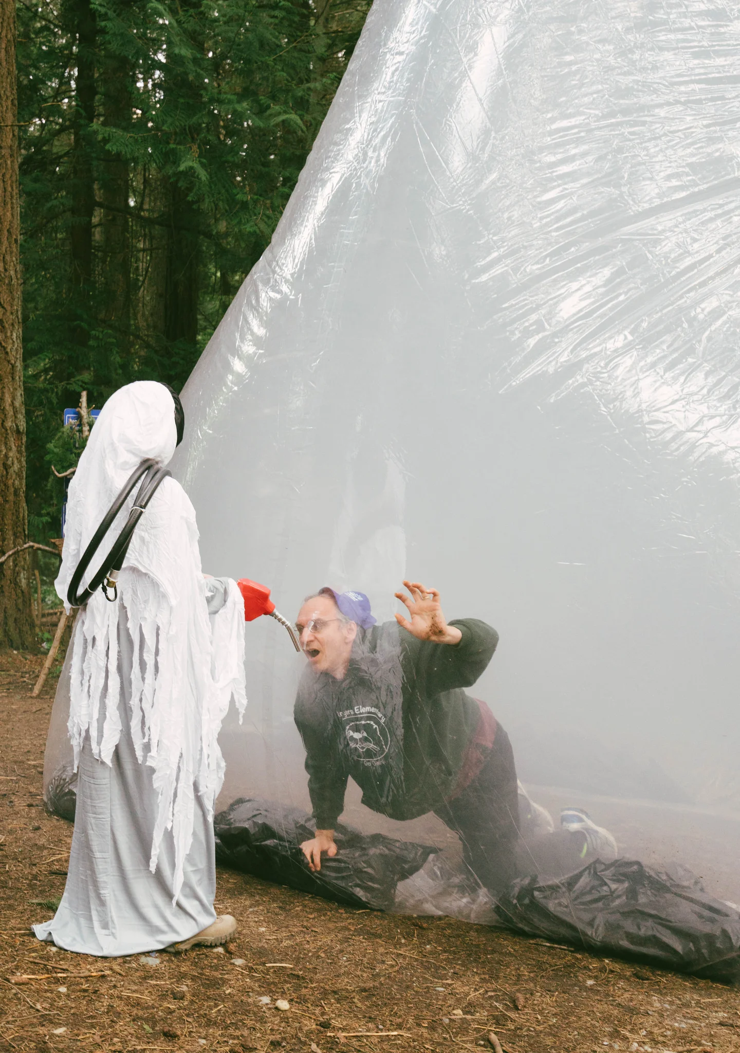 Two weeks ago we took the entire installation out to the woods north of Seattle for a fun promotional shoot with photographer Kevin Scott. His spectacular images (seen at the aforementioned link) capture the story of 'The Gas Trap' in a very evocative way.