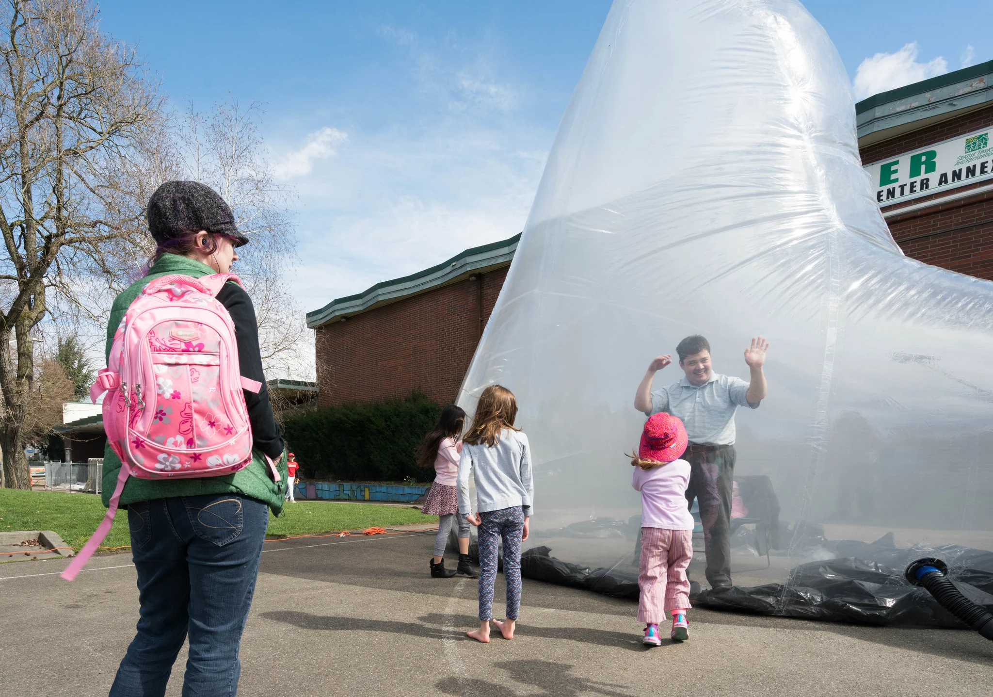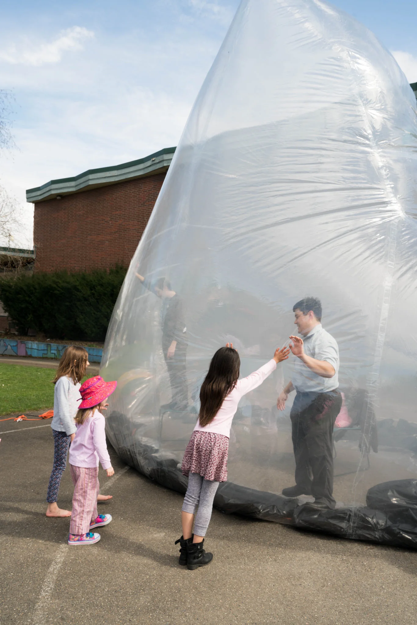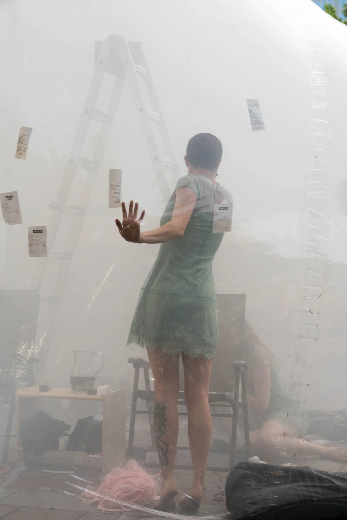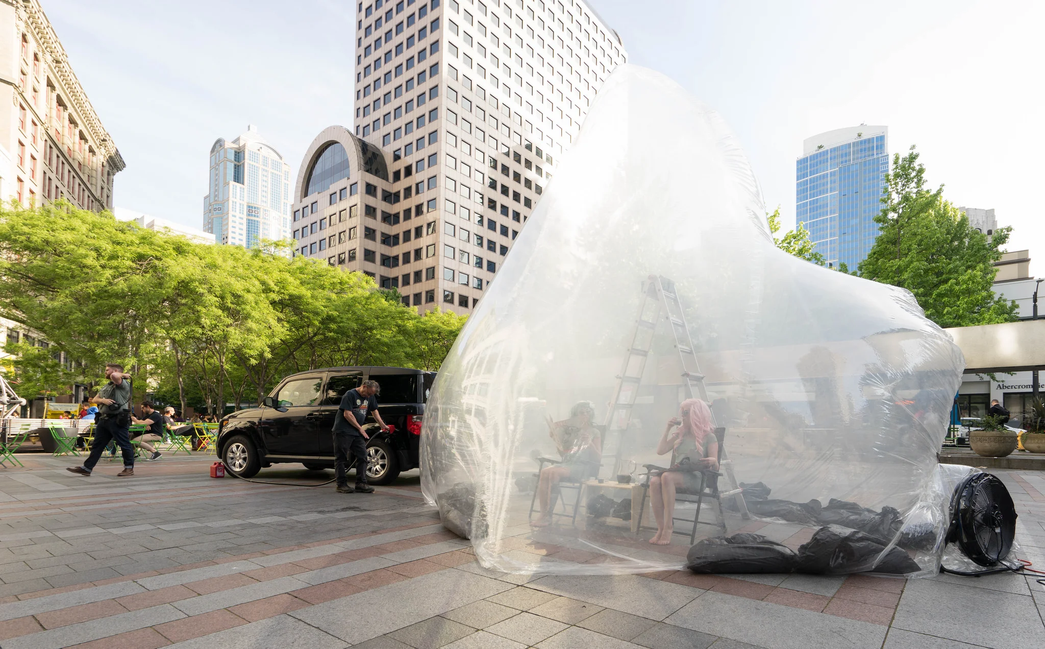 A collaboration with activist arts organization Coltura and artist Samaj, 'The Gas Trap' is meant to illustrate how an addiction to gasoline is slowly poisoning our habitat. The inflatable connects (visually) to a car using a large hose while the interior functions as a stage for an original performance piece by Alyssa Norling and Grace Orr.